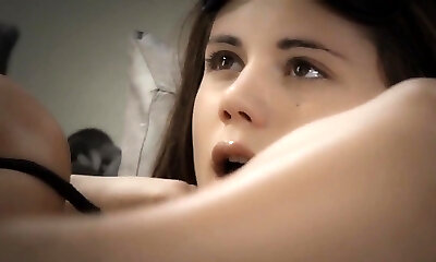 Angelic brunette makes loud noises when a mammoth manmeat sinks against her tight walls