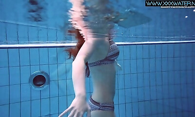 Damn scorching underwater solo show performed by aroused and lovely chick