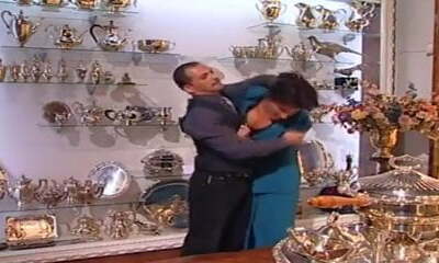 Steaming vintage brunette sexy babe blows dick and bends over
