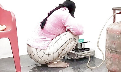 Indian bhabhi cooking in kitchen and fucking brother-in-law