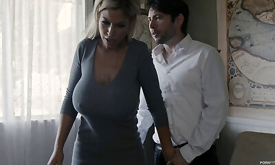 Mega busty French milf Ava Addams caught her son-in-low snuffling her delicates and fapping off his cock
